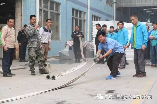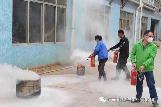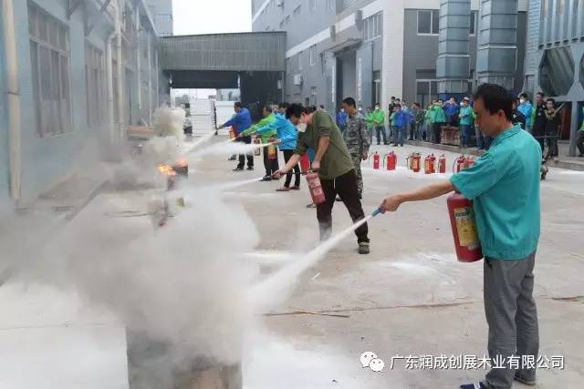 ↑员工操作灭火筒,每个员工都要会用哦!