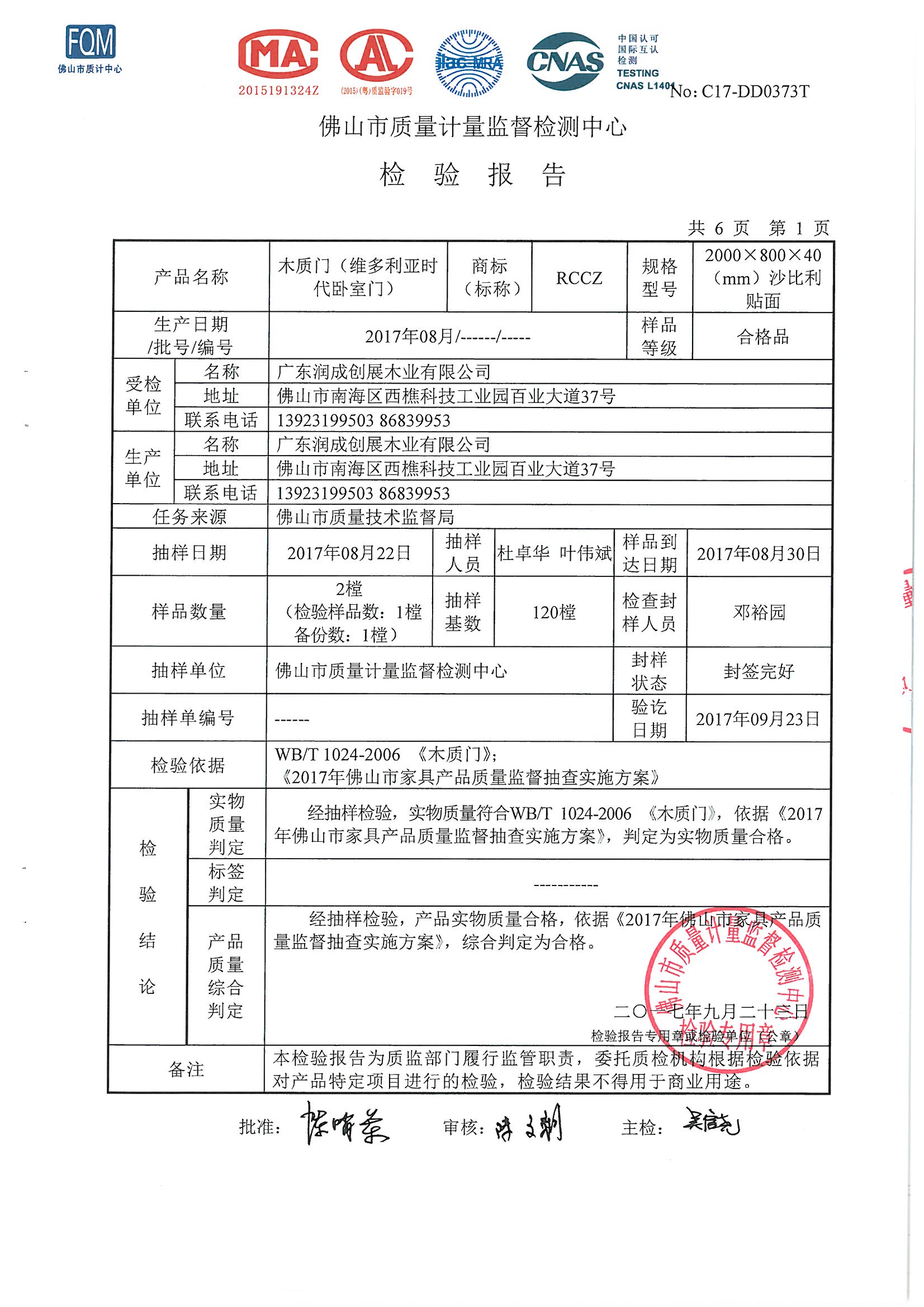 产品质量监督抽查检验报告(维多利亚时代)合格!