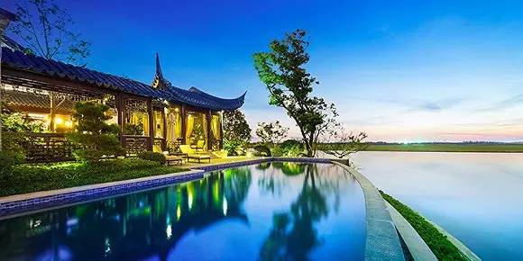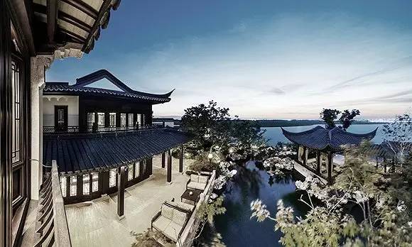 占地 6730平米的宅邸总共花费了三年时间建造,所有建筑全部使用香山帮传统建筑营造技艺手工打造。临湖泳池拥有绝佳的视野,可以欣赏湖面风光,还可以眺望远处的苏州城市和金鸡湖夜景。