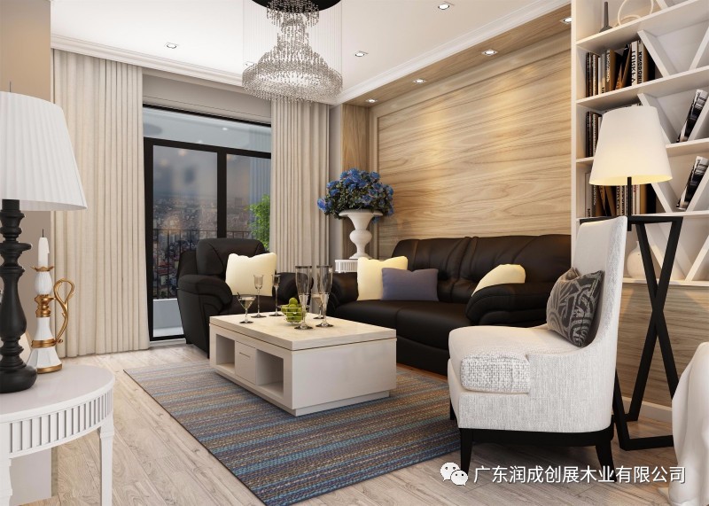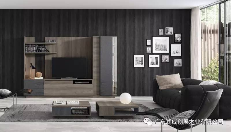 ▲黑色的家具与木色的背景墙,很好地搭配在一起。