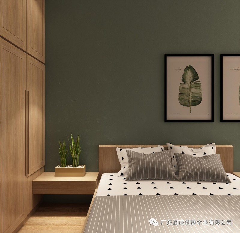 ▲墨绿色的墙壁,跟黄色原木的家具搭配起来,好温馨哦~~